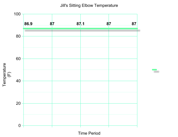 For our homeostasis experiment we followed a number of steps. We measured Jill's elbows temperature while she was resting in class and it comfortably leveled out around 87 degrees. Then we measured her elbows temperature after she had been lifting weights for over 20 minutes. Her temperature continued to climb until it leveled out around 98 degrees. After sitting and cooling off for quite some time Jill's temperature finally lowered back down to 87 degrees. This is an example of negative feedback because her body was able to cool back down after getting so hot. In the end Jill's temperature finally reached homeostasis.